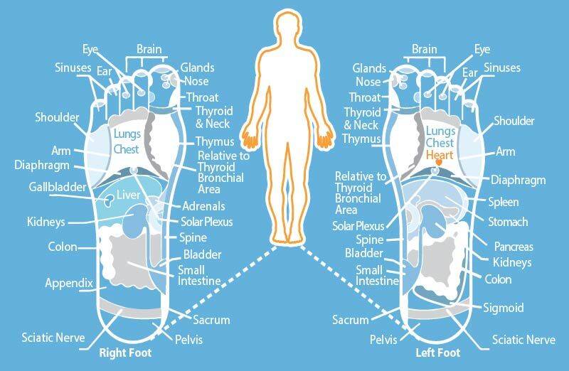 Die staan in verbinding met de rest van je lichaam. Je organen, botten, weefsel, spieren en dergelijke. Door bepaalde punten onder je voet te masseren, kun je blokkades in je lichaam opheffen.